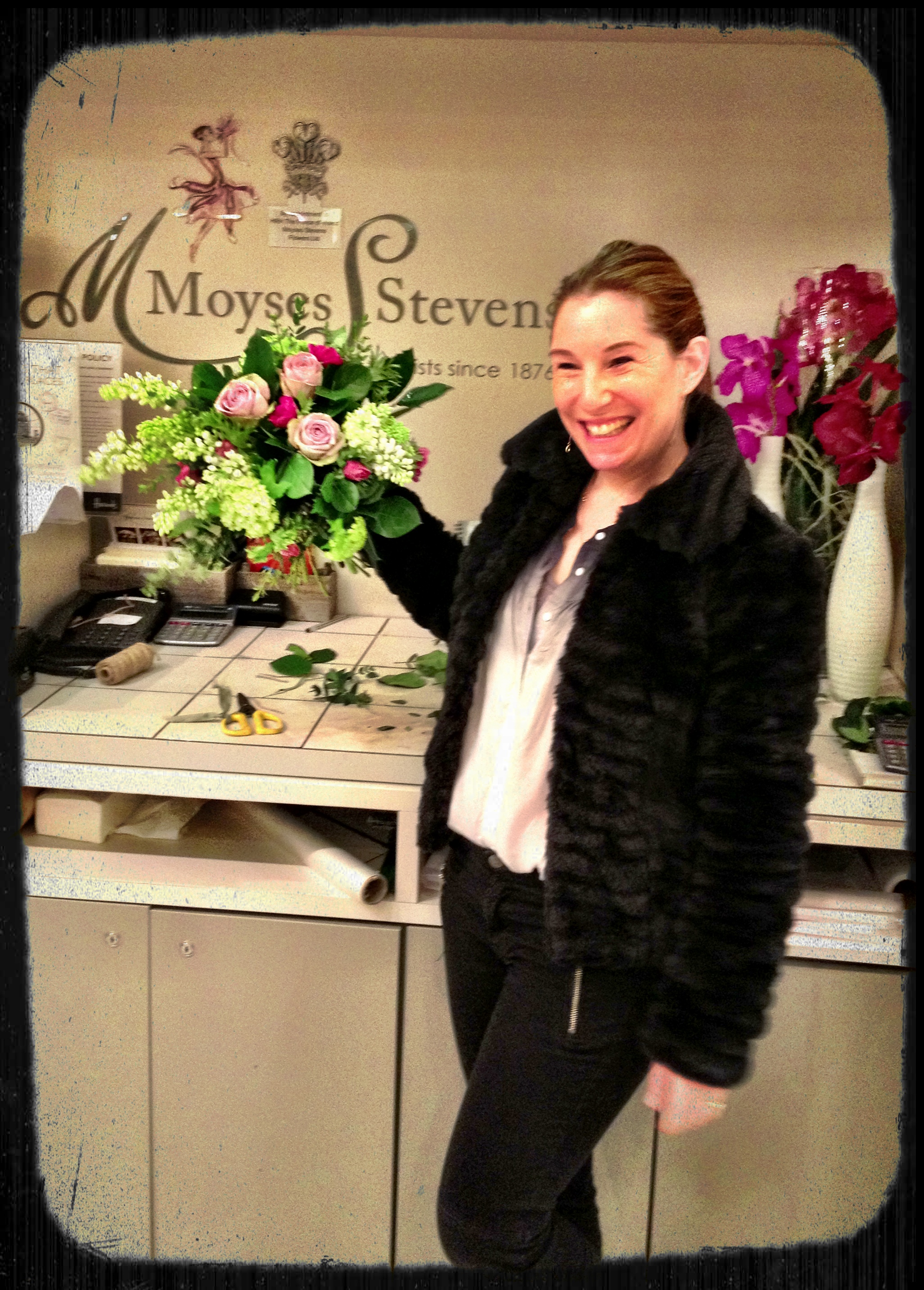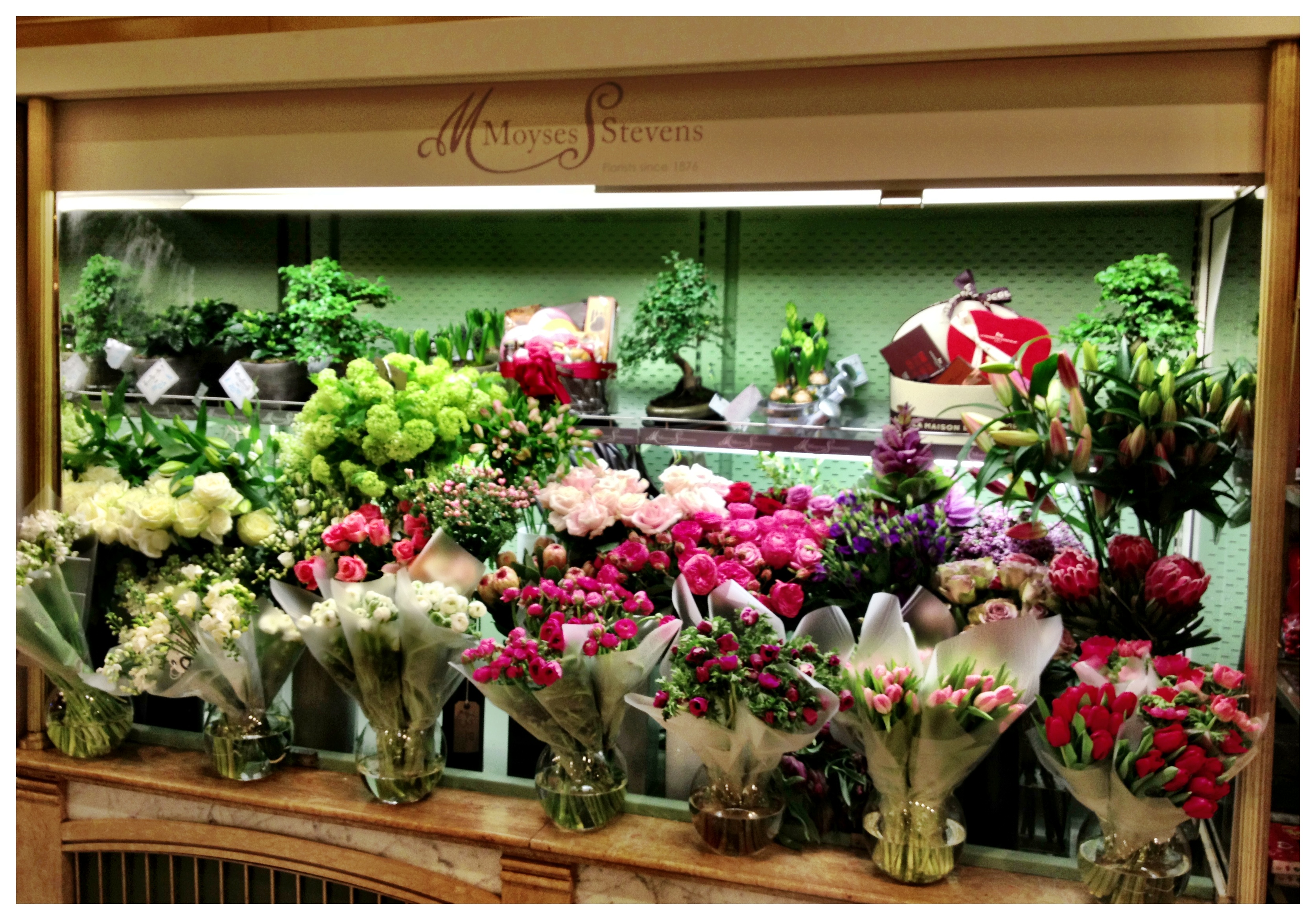 I explained that I was going to learn how to create a hand tied bouquet. The flower lover in Mini immediately developed a ‘terrible tummy ache’ and ordered that I took her along too. ‘Not a chance!’ I cried, and promptly raced off to Harrods where Moyses Stevens has just opened their concession within the world famous food hall.