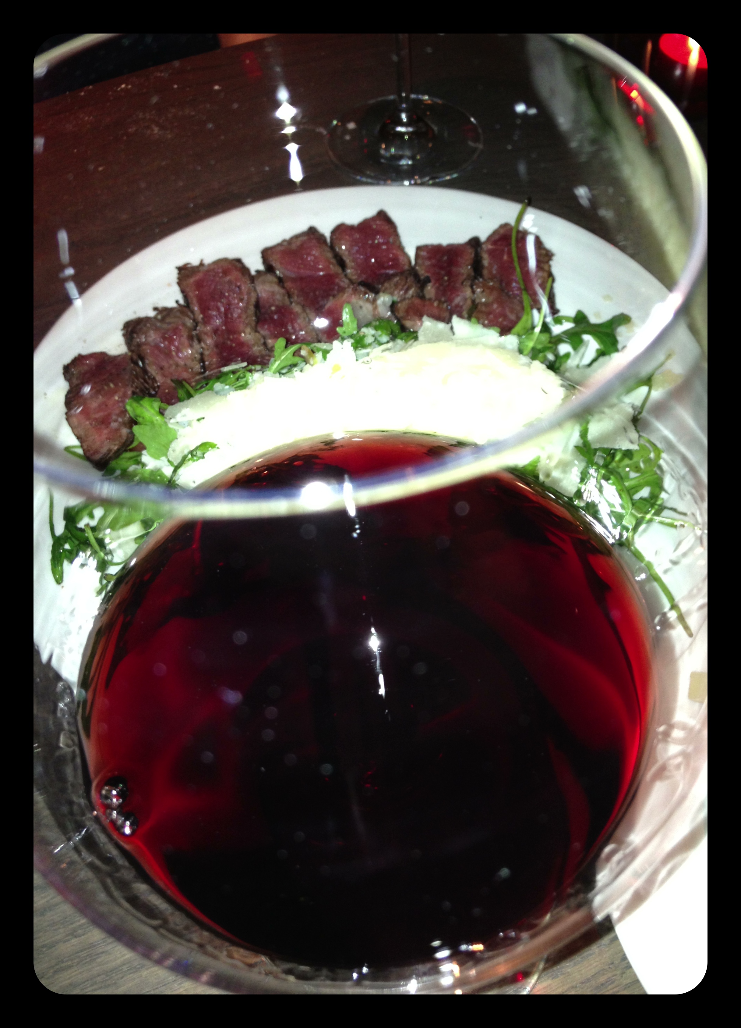 Mike, the super friendly manager, explained to us that, unlike most other restaurants, the menu here is designed to complement the wine. And it soon transpired that wine bar is actually part owned by Basile’s family so not only are these quality wines unavailable elsewhere in the UK, the depth of knowledge of how they should be drunk is more than extensive. We shared plates of antipasto (£15.25), buffalo mozzarella, avocado and pomodori (£11.25) and raved as we feasted on the organic beef fillet tagliata (£19.50). Matured on the bone (and well hung – cue lots of giggling), the Aberdeen Angus is served with rocket salad and parmesan shavings.