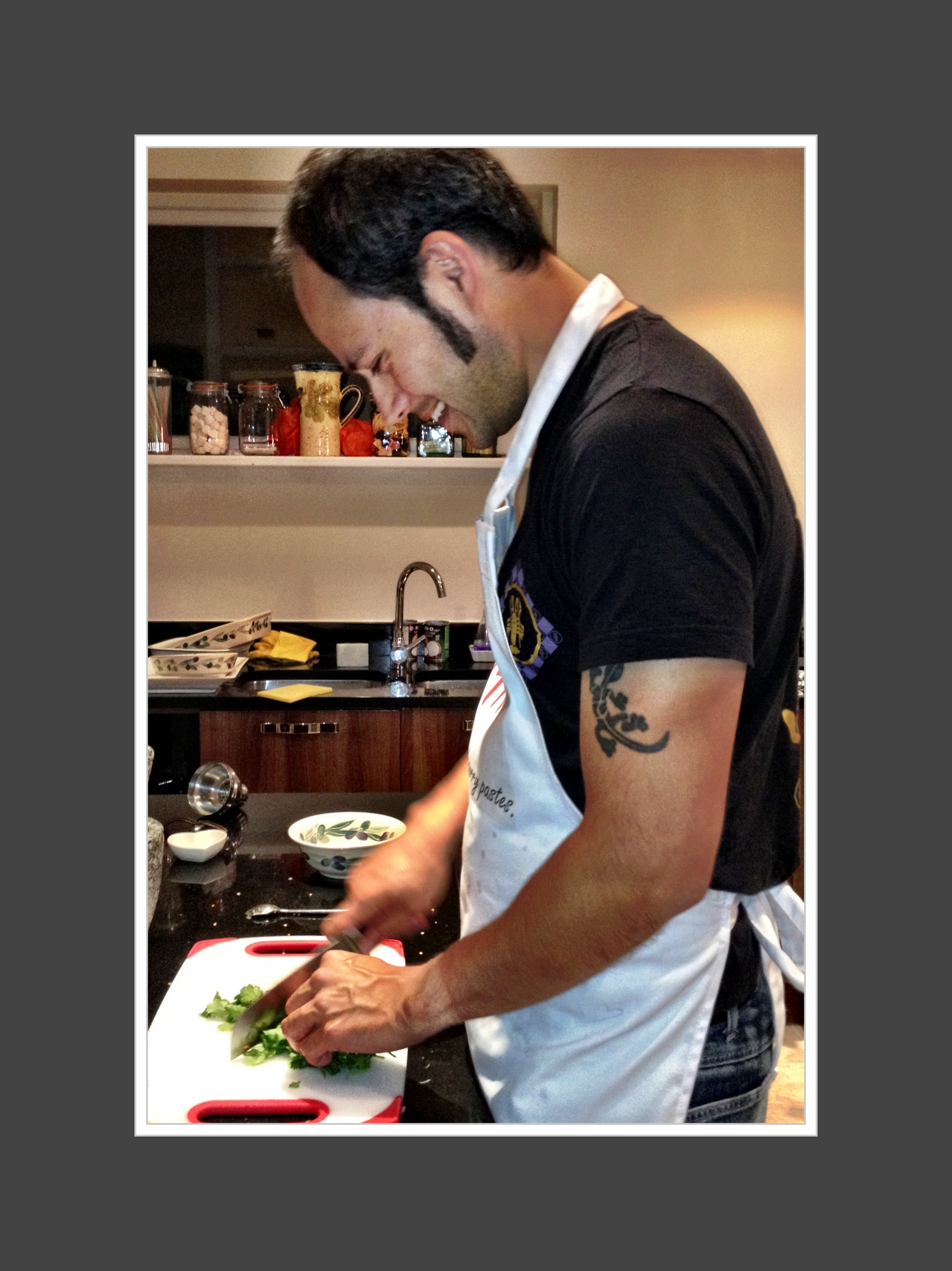 Along with a hairdresser to blow dry my hair daily at home, I dream of a world where I have my own personal Thai chef. And so when Brett Cowie rocked up, a couple of hours in advance of our guests arriving last Friday night, I was too excited to actually interview him.