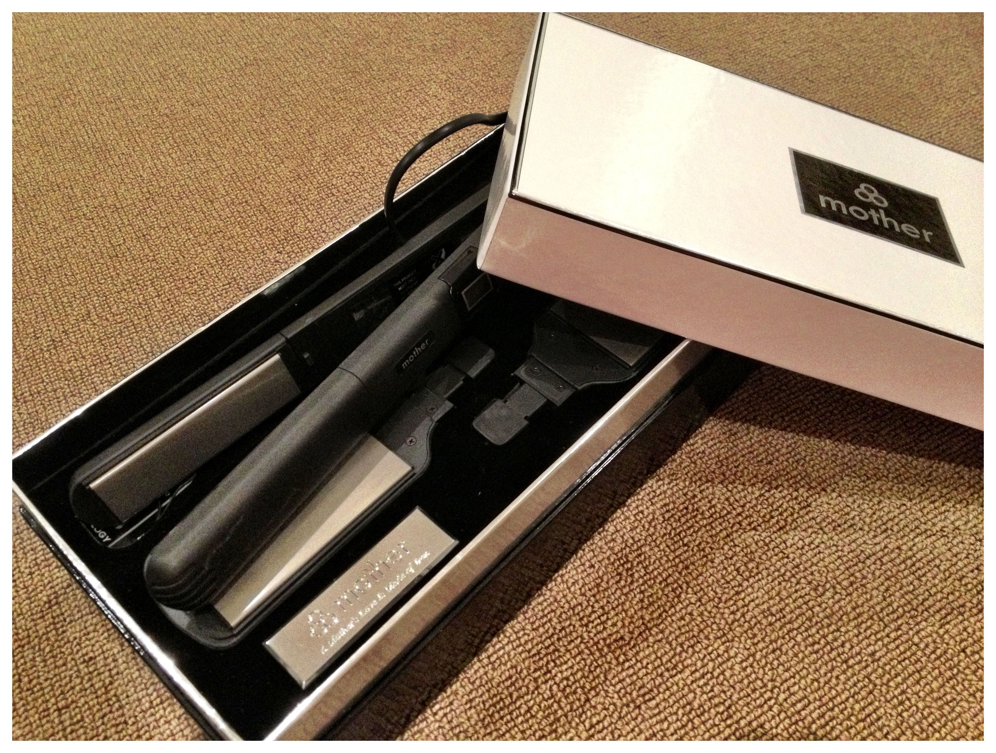 I’m not ashamed to say that I knew very little about hair straighteners and have only used my pair of rather old GHD irons a handful of times over the last decade. That was, until I was sent the innovative, Multi Hair Styler from Mother. Its packaging was enough to seduce me. A large, solid box which includes two pairs of titanium styling plates, heat covers, heat mat, large styling clips and booklet… assembling it, I felt like James Bond loading my revolver…