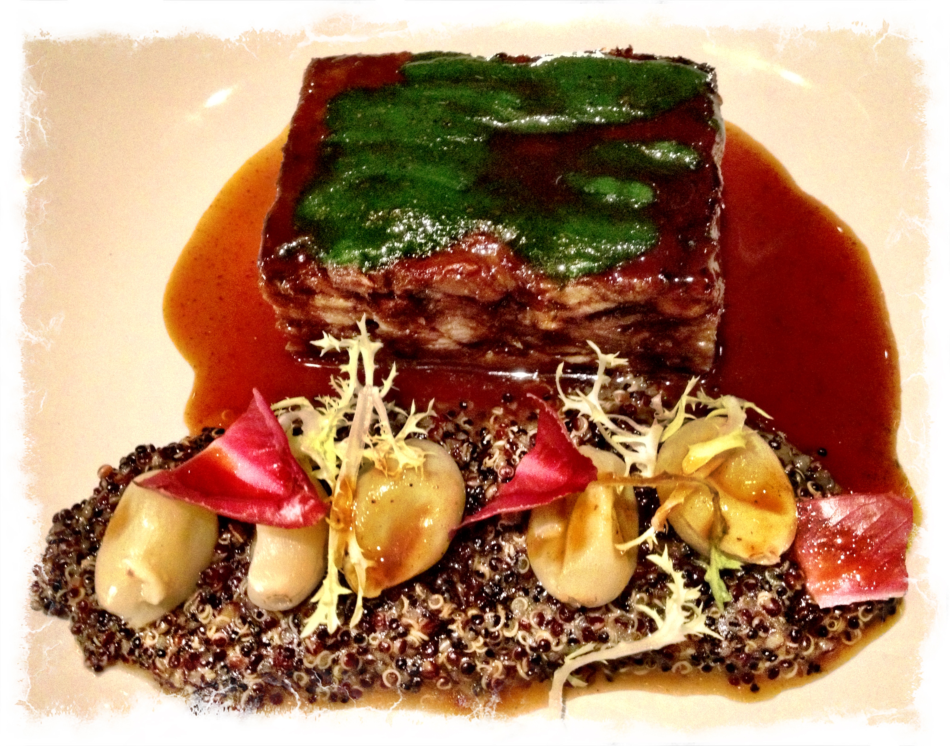 His main was the most admired. Braised lamb shoulder in coriander and more pisco juice with black quinoa and white grape (£22) was more artistically presented than most of the Frieze Art Fair, visited earlier that week.