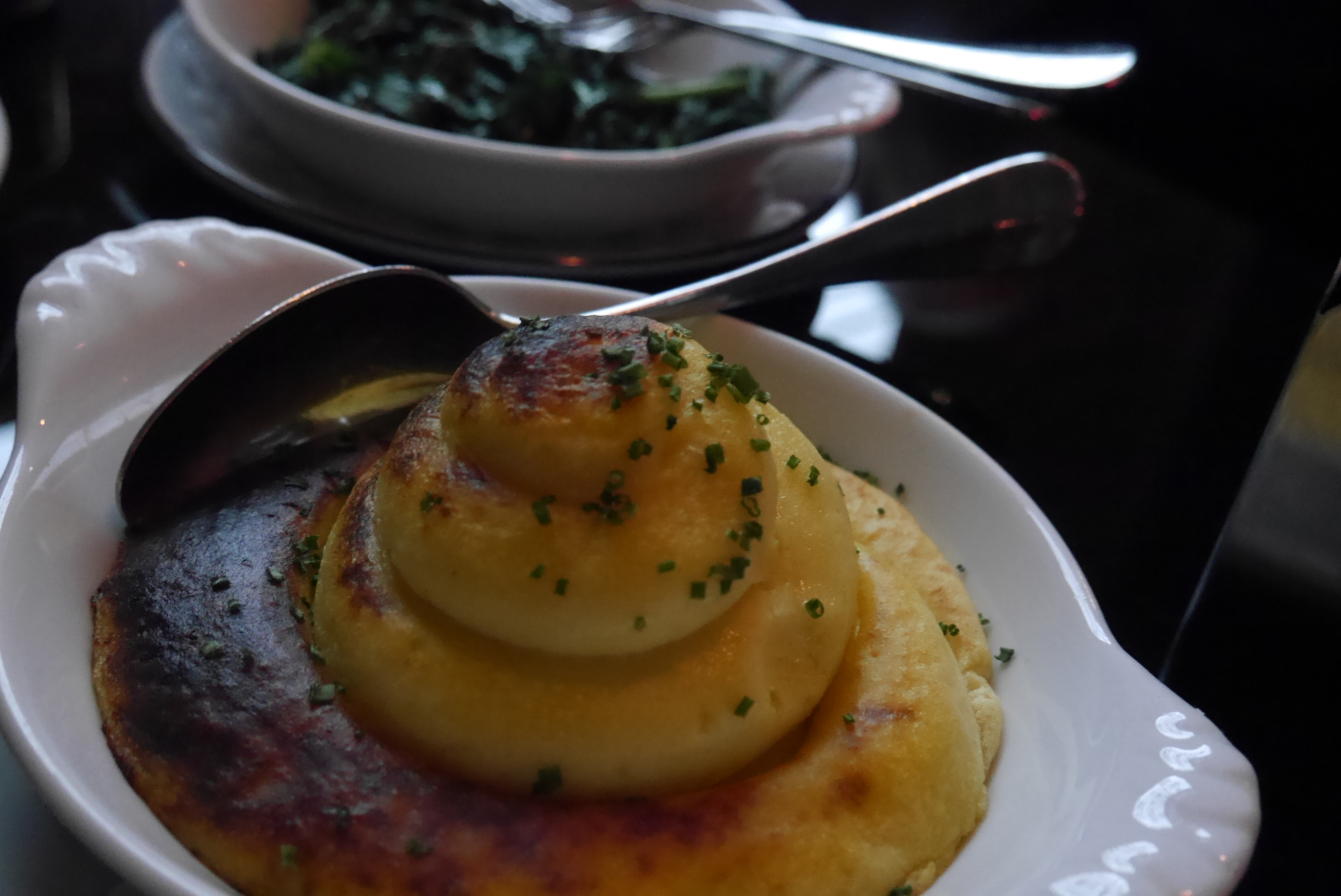 Meat IS the business at Strip. So, after our starters of tuna tartare and beef carpaccio, we got stuck right into our New York Strip Steak – with sides of truffle mash and wilted spinach.